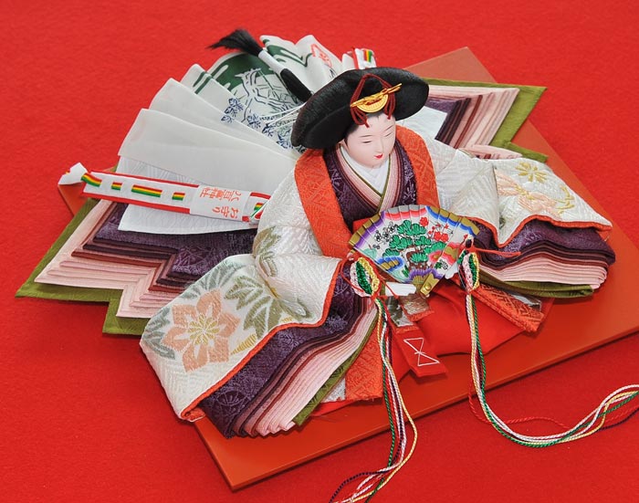 - お手入れ用歯ネバタキと手袋。女の子の節句には厄除けに赤の敷物をお付けします。