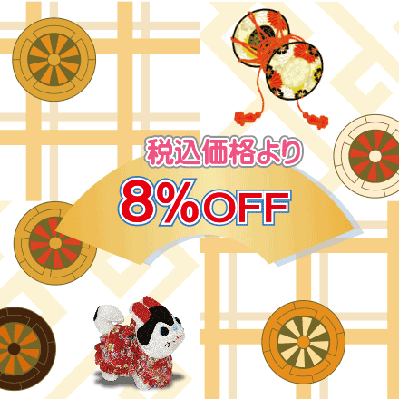 - お祝いの定番の金襴鶴柄。可愛い鹿の子模様他。一点差し上げております。
